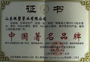 山东银塑管业有限公司位于泰山东麓、汶水河畔、交通便利的莱芜市凤城工业园,是一家以生产、研究及开发PVC、PE管材、管件节水灌溉系列产品的综合性塑料加工企业。 公司拥有目前国内最先进的PVC、PE管材管件生产线,专业的生产技术人员,年生产各种规格的PVC、PE管材管件两万多吨。公司生产的“银塑”牌管材、管件及系列节水产品多次被评为消费者满意产品,并通过国家、省、市三级检测。产品质量严格按照国家标准执行,顺利通过了ISO9001质量管理体系认证和ISO14001环境管理体系认证,积极推动了企业的规范性发展。 公司重视企业发展人才,先后从国内各大院校聘用专业管理人员和相关工程技术人员,为公司发展奠定了坚实的基础。技术设计人员能为农田灌溉,自来水工程及大小节水工程提供专业完整的技术服务,从而带动销售队伍不断扩大,...... [ 查看详情 ]