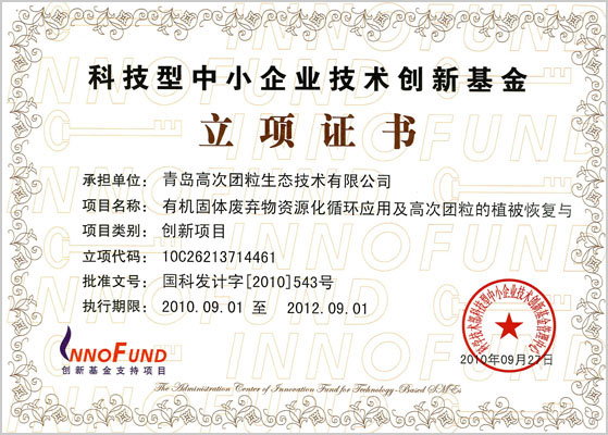 科技型中小企业技术创新基金立项证书