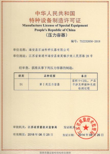 特种设备制造许可证(压力容器)