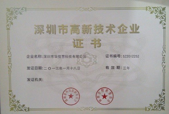 深圳市高新技术企业证书